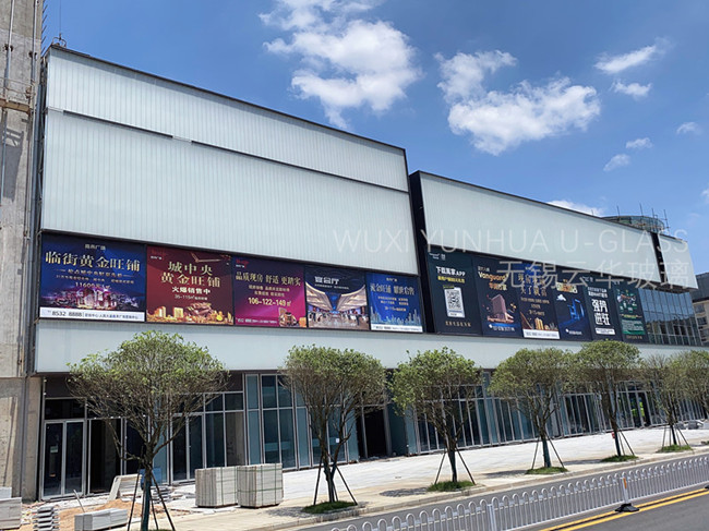 選用無錫云華K25*60*7、K25*90*8超白香梨紋鋼化噴砂U型玻璃